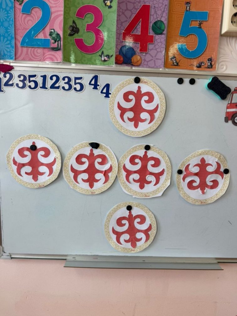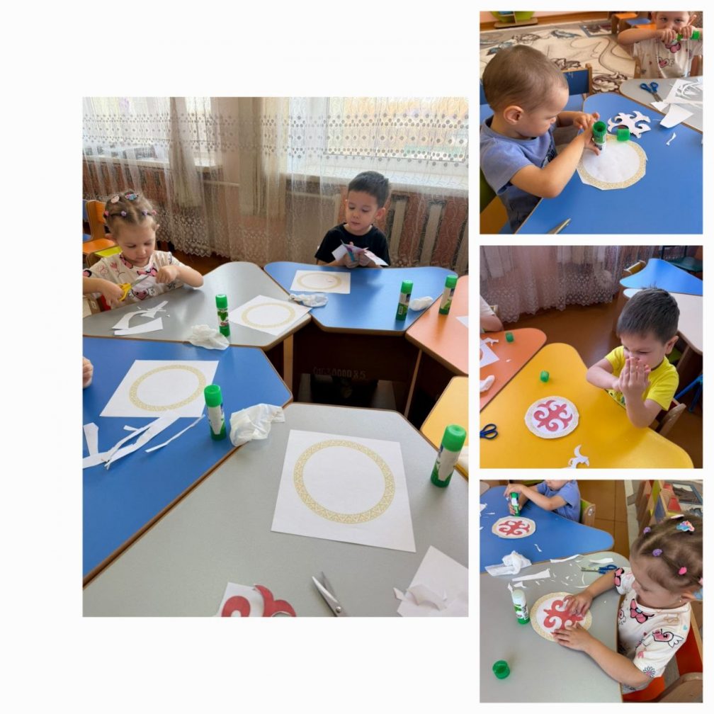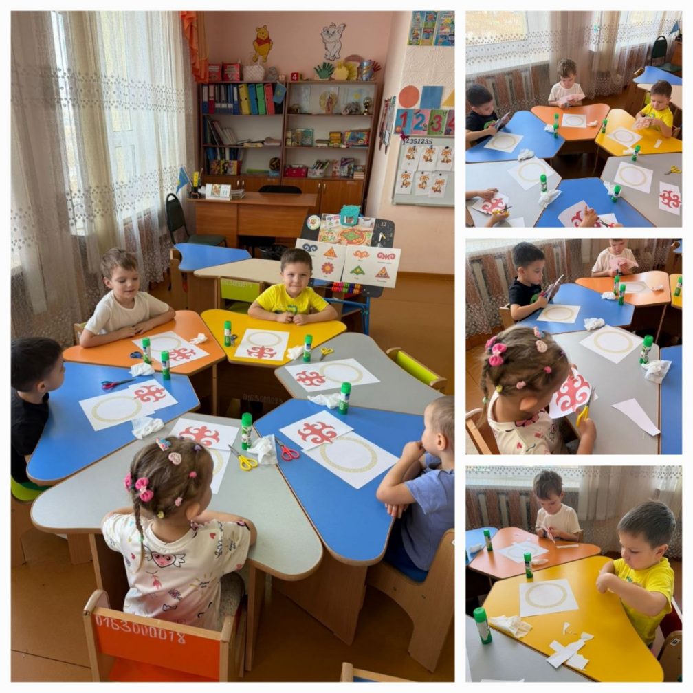 Мақсаты: ұлттық ою-өрнектерді пайдалана отырып, тұрмыстық заттарды безендіру дағдысын дамыту .