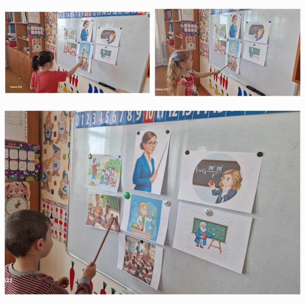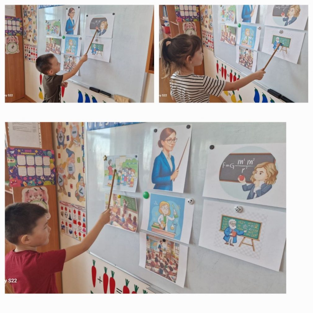 Мақсаты: балалардың мұғалім мамандығы туралы білімдерін кеңейту, балаларды мектеппен таныстыру.