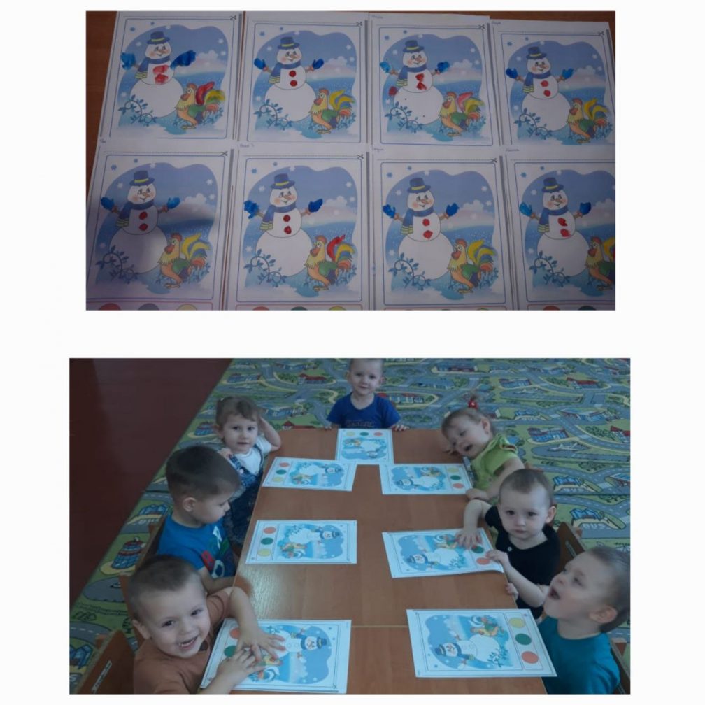 Сурет салу. Тақырыбы: "Снеговик және кокерель"
